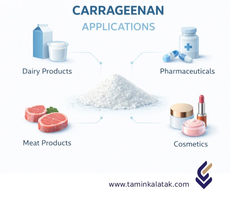 کاراگینان ماننده ژلان گام به دلیل ماهیت طبیعی و خواص عملکردی، در طیف وسیعی از صنایع از لبنیات و نوشیدنی‌ها گرفته تا گوشت، دارو و آرایشی–بهداشتی مورد استفاده قرار می‌گیرد.