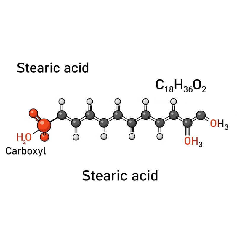اسید استئاریک (Stearic Acid) یک اسید چرب اشباع با زنجیره بلند است که بهصورت طبیعی در چربیها و روغنهای حیوانی و گیاهی یافت میشود. فرمول شیمیایی آن CH₃(CH₂)₁₆COOH است. این ماده به صورت یک جامد مومی شکل، سفید یا کرمرنگ، و با بویی ملایم چربی شناخته میشود. استئاریک اسید از هیدرولیز یا ترانساستریفیکاسیون چربیها و روغنها به دست میآید و به دلیل خواص شیمیایی و فیزیکی منحصربهفردش، در صنایع مختلفی کاربرد دارد.